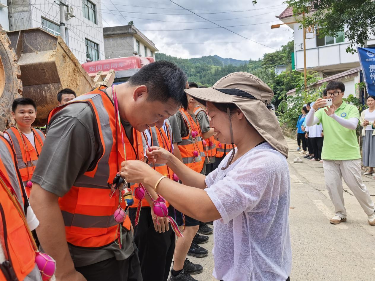 7月3日,随着最后一段受阻道路恢复畅通,LEYU.COM灾毁公路抢通突击队圆满完成榕江县兴华乡、定威乡的抢险保畅任务。得知突击队即将撤离,兴华乡、定威乡上百名身着节日盛装的群众聚集在街口,举行了一场朴实而热烈的欢送仪式。乡亲们将精心准备的染色红鸡蛋送到每一位突击队员手中,以最淳朴的方式,表达对公路集团灾毁公路抢通突击队的感谢。