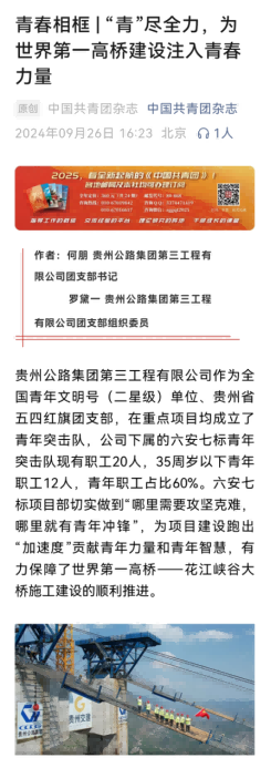 走出长廊,联建的触角延伸至更广阔的天地。项目团队带着“探秘世界第一高桥”的科普讲座走进花江镇第一小学,用模型和影像为孩子们打开科学之门;联合属地部门开展“我为群众办实事”活动,解决周边村民出行、就业难题。“党建联建不是‘走过场’,而是要让大桥建设真正惠及一方。”项目党支部书记说。