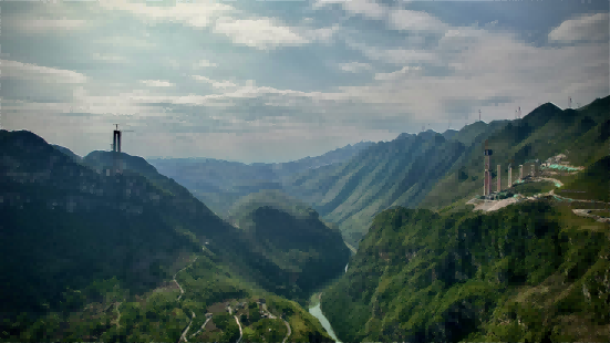 穿过长廊,镜头转向峡谷深处——625米高空,花江峡谷大桥的钢索如银链横跨天际。这座全长2890米、主跨1420米的“新世界第一高桥”,从开工起就面临陡峭地形、复杂地质的“双重考验”。