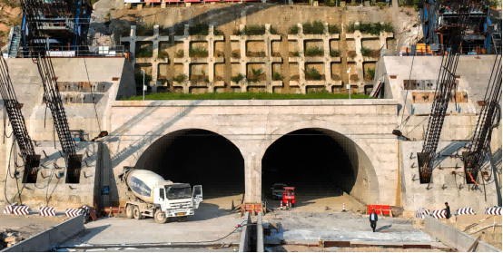 从长廊远眺,施工区的雾炮机正喷洒水雾,与峡谷的绿意相映成趣。作为国家级喀斯特石漠化防治区的“生态敏感工程”,项目将“绿水青山就是金山银山”理念刻在长廊的醒目位置:拌和站安装砂石分离系统,废水循环利用率达90%;隧道洞口部署雾炮机和料场除尘系统,粉尘排放浓度远低于国家标准。